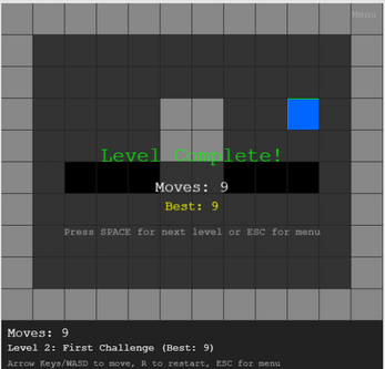 Quite fun, I did find a glitch however, being that if you complete a level and then click R to restart, and then beat it again, the overlay glitches so there are 2 end screens at once, and when you click space first then, that makes you go to the next level and then still one end screen is left and you can click space again to instantly skip a level, seeing as this was made in such short time though, a glitch existing make sense